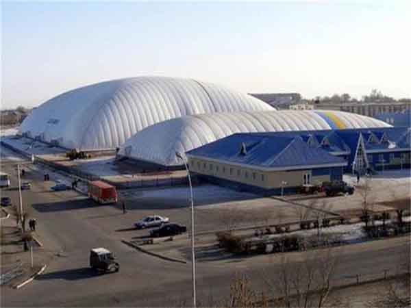 充氣膜體育館是用特殊的建筑膜材做外殼,配備一套智能化的機電設備在氣膜建筑內(nèi)部提供空氣的正壓,把建筑主體支撐起來的一種建筑結(jié)構(gòu)系統(tǒng)。