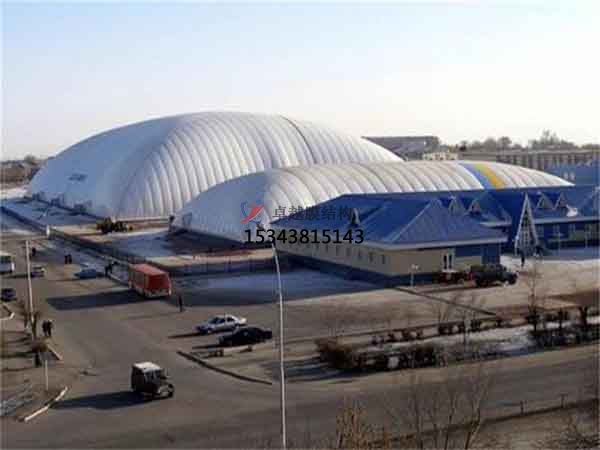 2、卓越膜結構工程公司是充氣膜結構工程設計施工、結構設計、靜動力計算分析、整體結構安裝以及使用維護于一體的綜合性工程公司。膜結構中的高強度柔韌薄膜稱膜材,它是一種耐腐蝕、耐高溫、耐久用、高強度的樹脂類涂層織物,由多種復合PVC樹脂涂層刀刮成型,具有質地柔韌、厚度小、重量輕、透光性好的特點。對自然光吸收和透射能力、阻燃,具有良好的耐久、防火、氣密等特性;表面經(jīng)過特氟龍?zhí)幚砘蚨趸伩估匣幚?,具有較高的自清潔性能。下面就大家介紹一下我公司在棗莊市地區(qū)完成的部分充氣膜結構封閉項目。