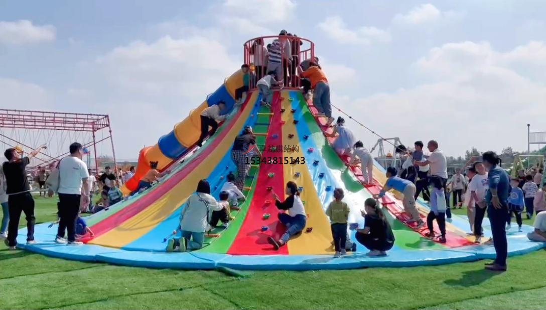 火山攀巖適用于各種場所,如大型游樂場、冒險主題公園、娛樂中心、特色小鎮(zhèn)等場所。膜結(jié)構(gòu)的輕便性和可塑造性使得它在不同的場地環(huán)境中都能夠方便地安裝和設置。無論是場地空間大小、地形地貌如何,都可以根據(jù)實際情況對火山攀巖設備進行布局和調(diào)整,以適應不同場所的需求。