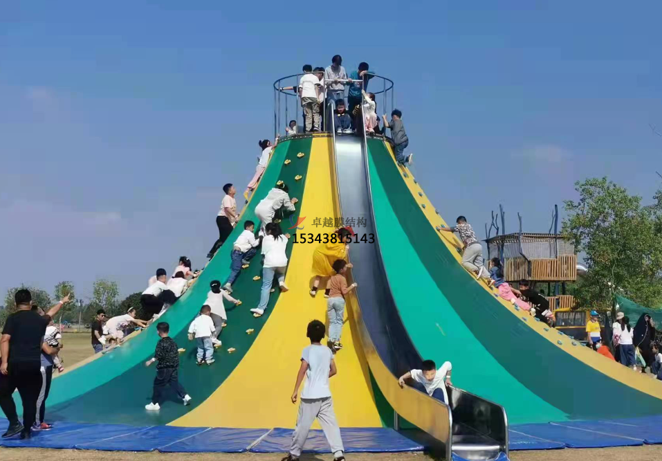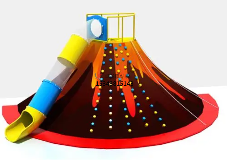 火山攀巖---它可以塑造出火山的外形,使整個游樂設備的外觀看起來像火山,從而得名火山攀巖。這種膜結(jié)構(gòu)能夠很好地貼合設計需求,通過一定的設計和加工工藝,將膜材覆蓋在支撐結(jié)構(gòu)上,構(gòu)建出火山形狀的外觀,為游樂場所增添獨特的景觀元素。