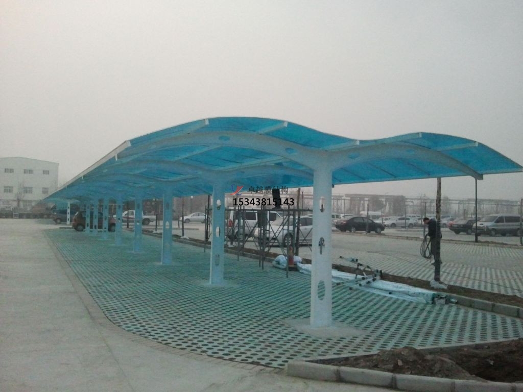 商業(yè)廣場雨棚搭建設(shè)計特別適合用來建造城市標志性建筑的屋頂,如體育與娛樂性場館,需有廣告效應(yīng)的商場、餐廳等。城市的交通樞紐是城市命脈的關(guān)鍵性建筑,使用功能要求建筑物各組成單元的標志明確。因而近來年,這類建筑越來越多采用膜結(jié)構(gòu)。建筑膜材料的使用壽命為 25 年以上。在使用期間,在雪或風荷載作用下均能保持材料的力學形態(tài)穩(wěn)定不變。建成于 1973 年的美國加州 La Verne 大學的學生活動中心是已有 23 年歷史的商業(yè)廣場雨棚搭建建筑.跟蹤測試與材料的加載與加速氣候變化的試驗,證明它的膜材料的力學性能與化學穩(wěn)定性指標下降了 20 %至 30 %,但仍可正常使用。膜的表層光滑,具有彈性,大氣中的灰塵、化學物質(zhì)的微粒極難附著與滲透,經(jīng)雨水的沖刷建筑膜可恢復(fù)其原有的清潔面層與透光性。
