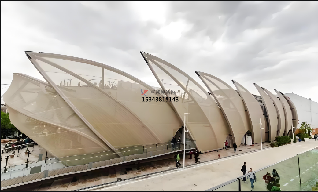 :公園中的休息亭、花架、遮陽廊等景觀小品,使用 PTFE 網(wǎng)格覆膜進行覆蓋,可與周圍的自然景觀相融合,形成獨特的景觀效果,為游客提供舒適的休息和觀賞空間。