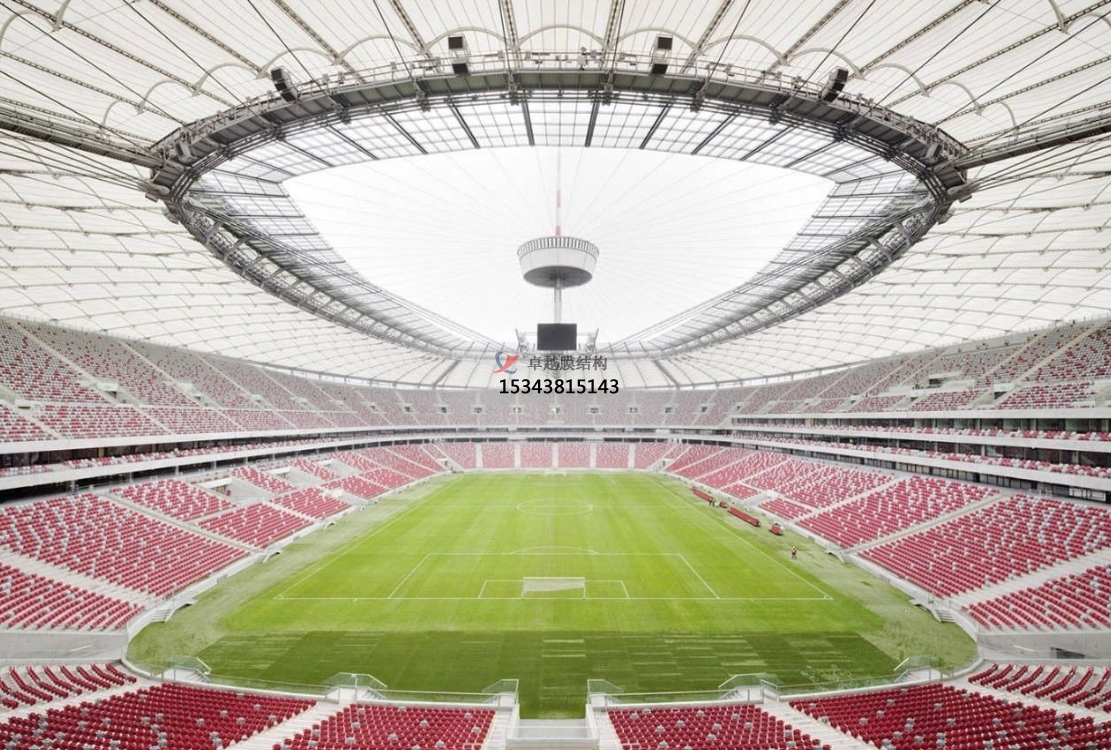 PTFE膜材具有透光率高,防火難燃、自重輕、強(qiáng)度高、自潔性好,不受紫外線影響、抗疲勞、耐扭曲、耐老化、使用壽命長(zhǎng)等優(yōu)點(diǎn),因此被廣泛應(yīng)用于有采光需求的大型公共設(shè)施,比如體育場(chǎng)館的屋頂系統(tǒng)、機(jī)場(chǎng)大廳、展覽中心、交通站臺(tái)、通道走廊等。