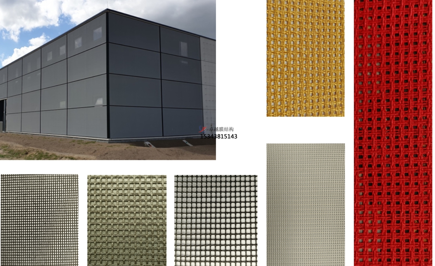 PTFE網(wǎng)格膜,基材紗線編織間距很大,涂層不再是滿覆,形成一定的開(kāi)孔率(20~70%)。特點(diǎn)是透光率高(30~70%,透光透景)、裝飾遮陽(yáng)效果好;強(qiáng)度低于外膜、透氣透水、不吸音。