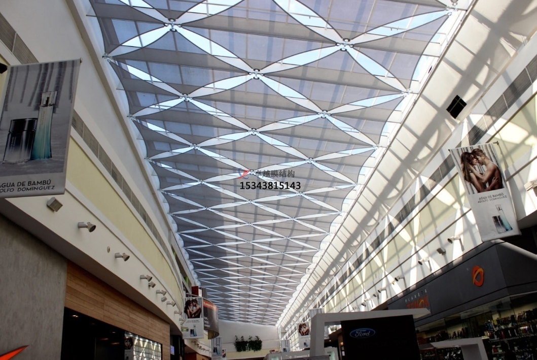 此外,PTFE膜結(jié)構(gòu)的薄膜具有一定的透光性,能夠有效利用自然光線,降低室內(nèi)照明能耗,能夠遮擋紫外線和紅外線,減少太陽輻射對建筑內(nèi)部的熱負(fù)荷,實(shí)現(xiàn)能源的節(jié)約和環(huán)境的保護(hù);而且PTFE膜結(jié)構(gòu)能夠通過不同的張拉和固定方式,創(chuàng)造出各種形態(tài)的建筑設(shè)計(jì)。它可以形成曲線、弧線、折線等多樣化的形狀,滿足建筑師對于獨(dú)特外觀和創(chuàng)新設(shè)計(jì)的需求。