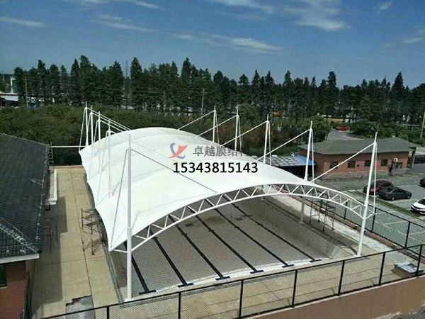 3、造型多變化:國產PVDF膜布材料工藝性好,是具有超強拉伸力的柔性面料,克服一些剛性材料難以制造的復雜空間和曲面變化方案。張拉強度4200N每平方米,可以依靠骨架支撐,也可以依靠膜結構索具制作各異的空間曲面。曲面光潔柔和,鋼柔結合的造型、清晰突出表現主休。