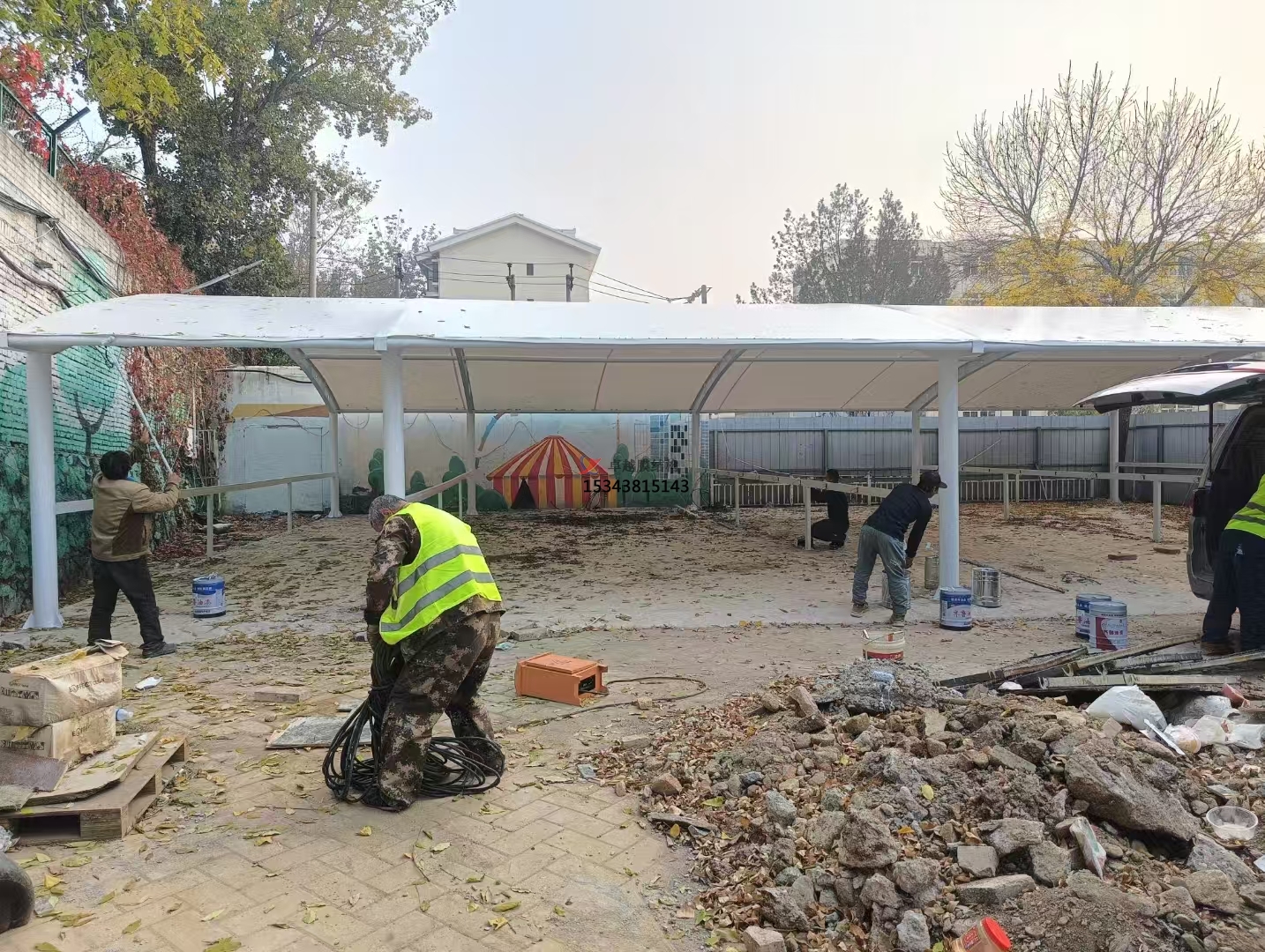 膜結(jié)構(gòu)停車棚具有組裝簡(jiǎn)單、施工效率高的優(yōu)點(diǎn),可以快速地完成安裝和卸載,這不僅可以節(jié)約時(shí)間和費(fèi)用,而且也可以減少對(duì)周邊環(huán)境和建筑物的影響。