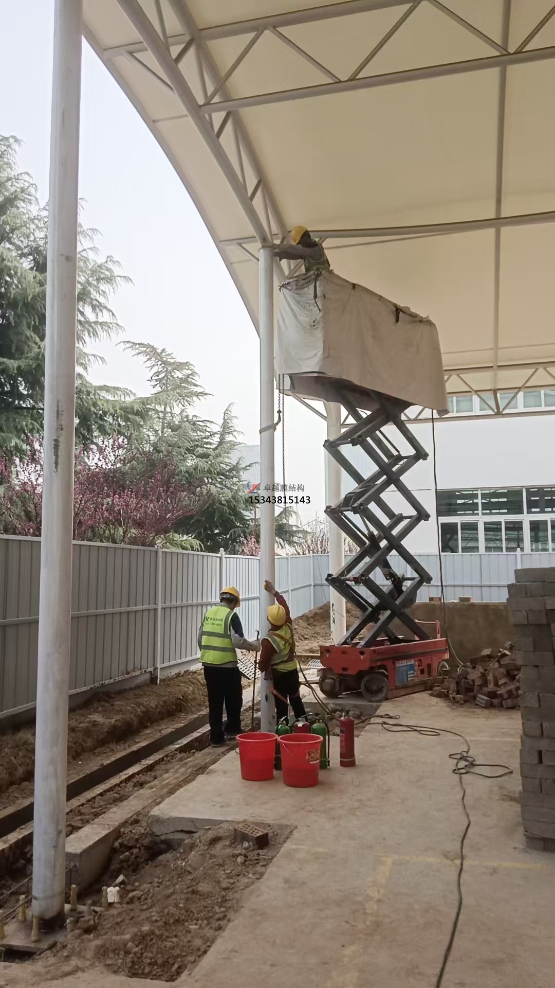 ?。和ㄟ^(guò)專用的張拉設(shè)備,如千斤頂、手拉葫蘆等,對(duì)膜材進(jìn)行張拉。張拉過(guò)程中要按照設(shè)計(jì)要求的拉力和順序進(jìn)行,逐步調(diào)整膜材的張力,使其達(dá)到設(shè)計(jì)的形狀和預(yù)應(yīng)力狀態(tài)。在張拉過(guò)程中,要使用測(cè)量?jī)x器實(shí)時(shí)監(jiān)測(cè)膜材的變形和張力情況,確保張拉均勻、準(zhǔn)確。張拉完成后,將膜材邊緣與支撐結(jié)構(gòu)進(jìn)行最終固定,如通過(guò)螺栓緊固、焊接等方式,確保膜結(jié)構(gòu)在使用過(guò)程中不會(huì)出現(xiàn)松動(dòng)或位移。