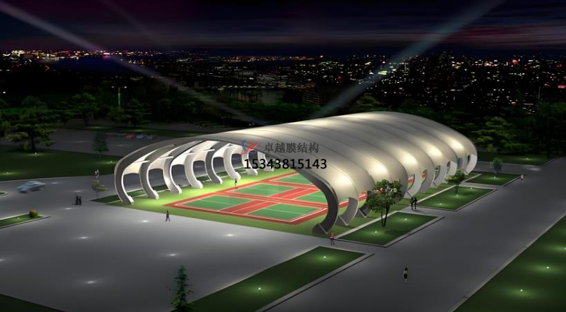 球場膜結(jié)構(gòu)是一種以膜材料為主要覆蓋物,采用高強(qiáng)度柔性薄膜材料,結(jié)合鋼結(jié)構(gòu)或索網(wǎng)結(jié)構(gòu),通過施加預(yù)應(yīng)力形成具有一定剛度和承載能力的建筑結(jié)構(gòu)。廣泛應(yīng)用于足球場、網(wǎng)球場、籃球場等體育場館。