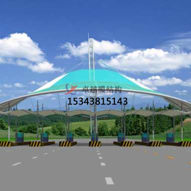 該收費(fèi)站膜結(jié)構(gòu)采用了雙層膜結(jié)構(gòu),外層膜采用高強(qiáng)度聚酯纖維材料,內(nèi)層膜則采用防水、防紫外線等特殊材料,以確保收費(fèi)站的耐久性和安全性。整個(gè)收費(fèi)站建筑造型簡(jiǎn)潔、流暢,充滿了現(xiàn)代感。