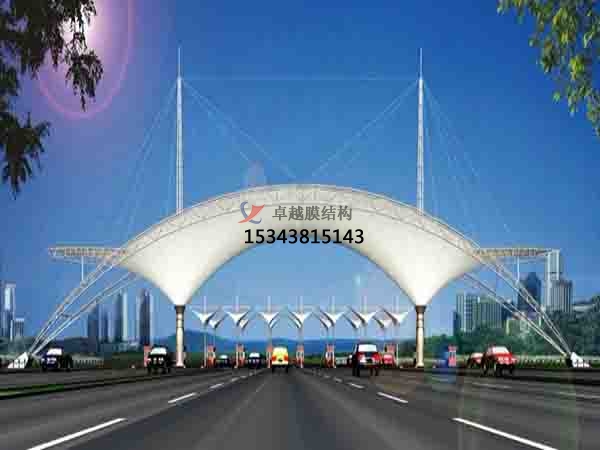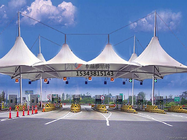 收費站膜結構具有造型美觀獨特,結構輕盈穩(wěn)定,材料性能優(yōu)越,透光隔熱良好,施工便捷快速等多種特點。膜結構打破了傳統(tǒng)直線建筑風格模式,以優(yōu)美曲面造型、簡潔明快的剛柔與力美組合,給人耳目一新之感,為建筑設計師提供了廣闊的想象和創(chuàng)造空間,可與周圍建筑和環(huán)境完美融合。膜結構自重輕,每平方米重量僅約1千克,能有效減輕基礎負荷。同時,通過鋼索與支柱在膜材中導入張力形成穩(wěn)定形式,這種柔性結構能夠承受較大位移,不易整體倒塌,抗震性能良好。常用的膜材如PTFE、ETFE等,具有強度高、耐久性好、防火難燃、自潔性好、不受紫外線影響等特點,使用壽命可達15-30年。膜結構頂棚具有一定透光性,可充分利用自然光照明,減少人工照明能耗,降低運營成本。同時,對熱能反射率較高,熱吸收量少,能為收費站創(chuàng)造舒適的通行環(huán)境。膜片的裁剪、鋼索及鋼結構等制作在工廠完成,施工現(xiàn)場只需進行鋼索、鋼結構及膜片的連接安裝定位及張拉,可與下部鋼筋混凝土結構同時進行,避免施工交叉,大大縮短建設周期。