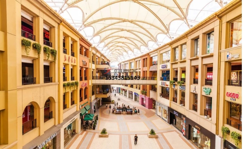 簡介:大家如果去大型的商場可能會注意到,其廊道或者大廳頂部都是采用了半透明或者透明的建筑材料,這種設(shè)計不僅滿足了商場對于自然采光的要求,使得整個商場看上去更加的敞亮,而且在白天還能大大的節(jié)省照明設(shè)施的運行時間,降低了能耗,以前在膜結(jié)構(gòu)沒有大規(guī)模應(yīng)用的時候,實現(xiàn)這種效果,都是采用了陽光板或者鋼化玻璃等材料,這些材料都有明顯的缺點,比如說陽光板受陽光直射的作用老化速度會大大加快,鋼化玻璃自重較重對于支承結(jié)構(gòu)要求高,而且安全性是個難點,但是膜結(jié)構(gòu)的出現(xiàn)解決了傳統(tǒng)材料的種種弊端,PTFE及ETFE膜材不僅可以實現(xiàn)透光性,而且自重輕,安全性更高,特別是ETFE其高自潔、高透光特性已經(jīng)成為了大型商業(yè)街區(qū)穹頂天幕的首選。