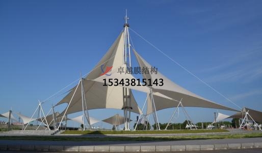 一個(gè)城市的中心區(qū)反映一個(gè)城市的地理風(fēng)貌和民族風(fēng)情,一起,也是一個(gè)城市文化開展程度的標(biāo)志。而景象規(guī)劃要求其具有廣泛的可讀性、老少皆宜,既有超凡脫俗的藝術(shù)價(jià)值,又能使群眾喜聞樂見與群眾息息相通。張拉膜以其輕盈飄逸的造型、柔美并帶有力氣的曲線和大跨度和大空間的鮮明個(gè)性和標(biāo)識(shí)性,應(yīng)用于城市小品規(guī)劃中。
