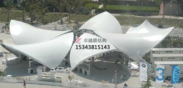 大部分的建筑都是設(shè)置在室外的,外面的罩棚會(huì)經(jīng)過(guò)太陽(yáng)曬、雨淋,所以現(xiàn)在很多人都運(yùn)用了膜結(jié)構(gòu)建筑,膜結(jié)構(gòu)建筑的篷布材質(zhì)是膜結(jié)構(gòu),而膜材的更大特點(diǎn)是強(qiáng)度高、耐久性好、防火難燃、自潔性好,不受紫外線(xiàn)影響,使用壽命長(zhǎng),一般15-30年。具有高透光率,透光率為13%,對(duì)熱能反射率73%,熱吸收量很少。正是因?yàn)檫@種劃時(shí)代的膜材料的發(fā)明,使膜結(jié)構(gòu)建筑成為現(xiàn)代化的永久建筑。