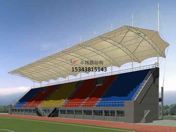4、輕巧而美觀的膜結(jié)構(gòu)用于敞開或半敞開建筑物的遮蔽屋蓋尤為適宜。近年來在足球、田徑等比賽的體育場中,越來越多的看臺挑蓬都采用膜結(jié)構(gòu)。國外很大露天劇院的舞臺、博覽會的展覽館也都以膜作為頂蓋。在我國廣大地區(qū)是農(nóng)貿(mào)市場也可大力推廣膜結(jié)構(gòu)。