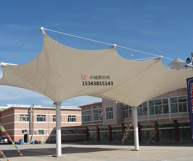 隨著都市現(xiàn)代化步伐的加快,汽車成為任何一個都市不可缺少的交通工具。我國由于汽車工業(yè)高速發(fā)展,城市的汽車擁有量成倍上升,但城市建設規(guī)劃沒能盡快適應這一發(fā)展的要求,常常是車無停放之地。所以在建設群規(guī)劃時就應充分考慮停車場的問題,把停車場的建設和規(guī)劃當成現(xiàn)代城市建設規(guī)劃的重要組成部分,變得越來越重要。同樣,膜結構在停車場建設中也擔當重要角色。商業(yè)廣場雨棚搭建的篷布材質(zhì)是膜材,而膜材的更大特點是強度高、耐久性好、防火難燃、自潔性好,不受紫外線影響,使用壽命長,一般15-30年。具有高透光率,透光率為13%,對熱能反射率73%,熱吸收量很少。正是因為這種劃時代的膜材料的發(fā)明,使商業(yè)廣場雨棚搭建成為現(xiàn)代化的永久建筑。
