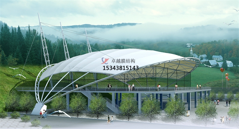 網(wǎng)球場膜結(jié)構(gòu)與造型學(xué),色彩學(xué)為依托,可結(jié)合自然條件及民族風情,根據(jù)建筑師的創(chuàng)意建造出傳統(tǒng)建筑難以實現(xiàn)的曲線及造型。膜結(jié)構(gòu)一建筑師的浪漫設(shè)想,享受大自然般的浪漫空間。