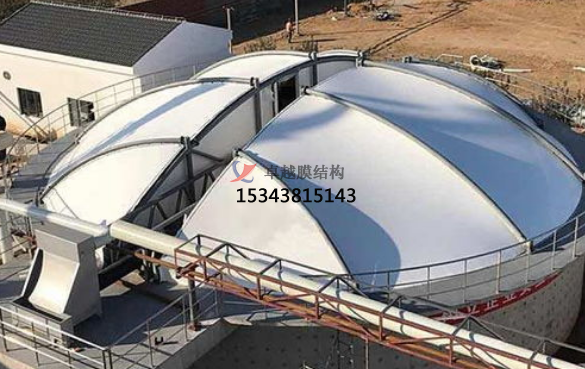 目前,污水池密封可采用的設(shè)計(jì)方案: 鋼支撐反吊膜、無骨架密封集氣罩、 懸索反吊膜等不同的設(shè)計(jì)方案,每種設(shè)計(jì)方案材料的用量都會(huì)有很大區(qū)別。一般采用鋼支撐反吊膜的較多,跨度太大時(shí)可以選擇無骨架密封集氣置、懸索反吊膜等解決方案。
