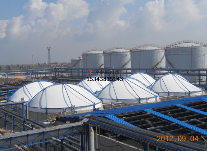 由于膜材自重輕,而抗拉強度很大膜結構可以從根本上克服傳統(tǒng)結構在大跨度(中間無支撐)建筑上實現所遇到的困難,適于大跨度的池體。