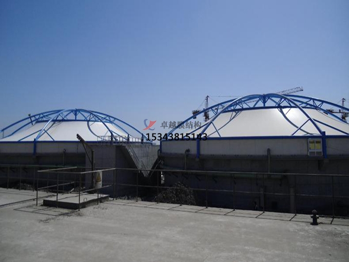 膜結(jié)構(gòu)污水池加蓋除臭具備優(yōu)良的隔熱保溫實(shí)際效果,能反射70%的太陽(yáng)光能源,消化吸收17%的膜材料自身,傳輸13%的發(fā)熱量,膜結(jié)構(gòu)污水池加蓋除臭工程施工周期時(shí)間短,反映在全部生產(chǎn)加工生產(chǎn)制造都能在加工廠進(jìn)行,只需在現(xiàn)場(chǎng)開(kāi)展拼裝和起重吊裝。