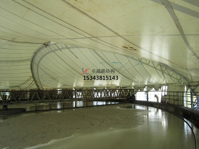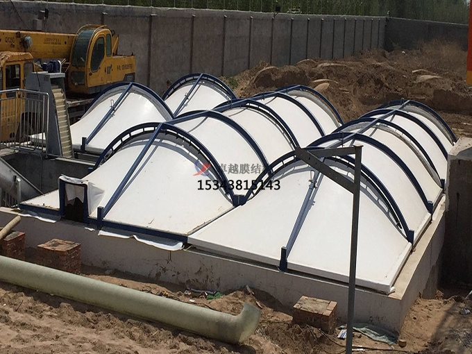 膜加蓋的廢氣搜集方法,不只能從根本大將廢氣合格排放,并且通過膜材的運用,不只能夠延長鋼構(gòu)的運用壽命,并且造型美觀,結(jié)構(gòu)新穎,除臭率高,是一切傳統(tǒng)污水池加蓋不能比的。