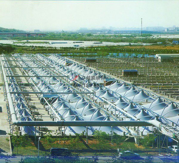 3.該項目采用了抗腐蝕能力很強的氟碳纖膜把廢氣罩住,鋼結(jié)構(gòu)在外部起到支撐的作用,將膜結(jié)構(gòu)吊起,膜材料在下部接觸污水池廢氣,鋼結(jié)構(gòu)在外部不與廢氣接觸,這樣既發(fā)揮了氟碳纖膜的抗腐蝕性能,又從根本上解決了鋼結(jié)構(gòu)由于與腐蝕性氣體接觸而帶來的腐蝕問題,因而鋼結(jié)構(gòu)可以按普通建筑鋼結(jié)構(gòu)的防腐等級考慮進行設(shè)計,具有50年的使用壽命,發(fā)揮了鋼結(jié)構(gòu)的性能,實現(xiàn)了結(jié)構(gòu)骨架與覆蓋材料的完美結(jié)合。歡迎來電訂購,聯(lián)系電話:18538073851,小編期待您的咨詢。