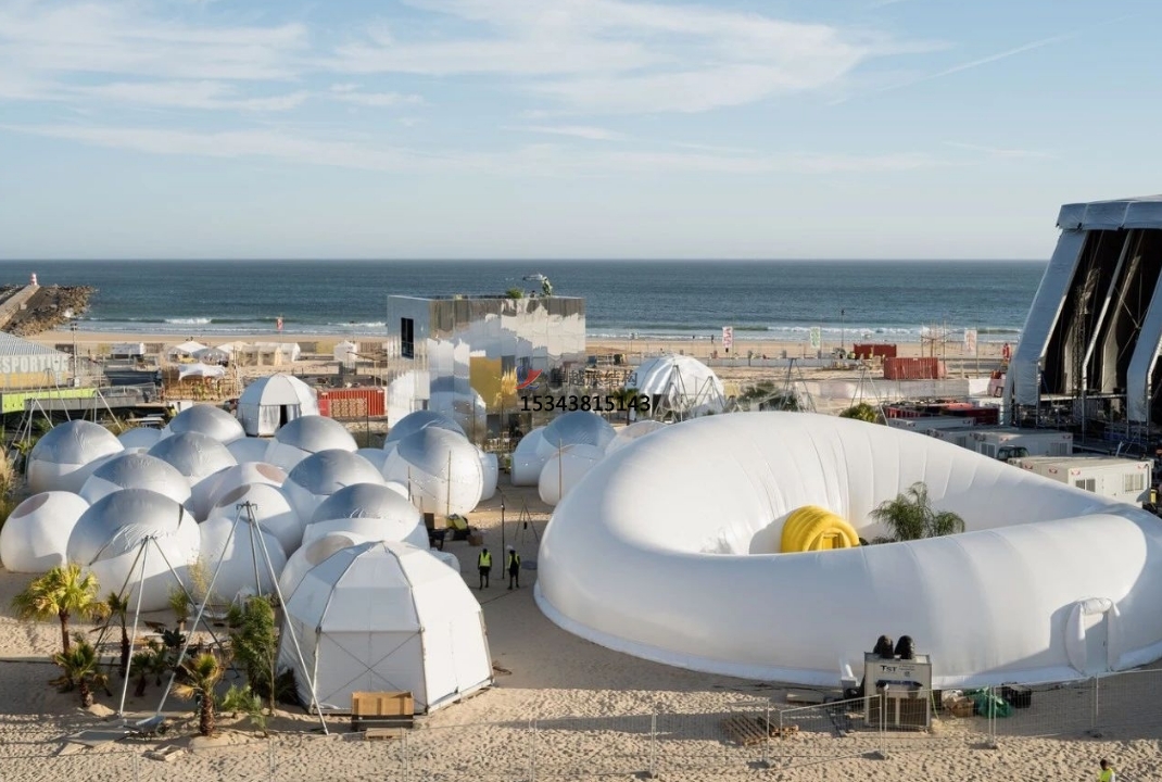 充氣式膜結(jié)構(gòu)憑借內(nèi)部氣壓的支撐,塑造出別具一格的形態(tài),廣泛運用于臨時性景觀設(shè)施以及主題公園中的特色建筑,例如充氣城堡與充氣展覽館。憑借其獨特的外觀與便捷的搭建特點,這些結(jié)構(gòu)成為吸引公眾目光的亮點,為景觀空間增添了活潑與歡樂的氣氛。