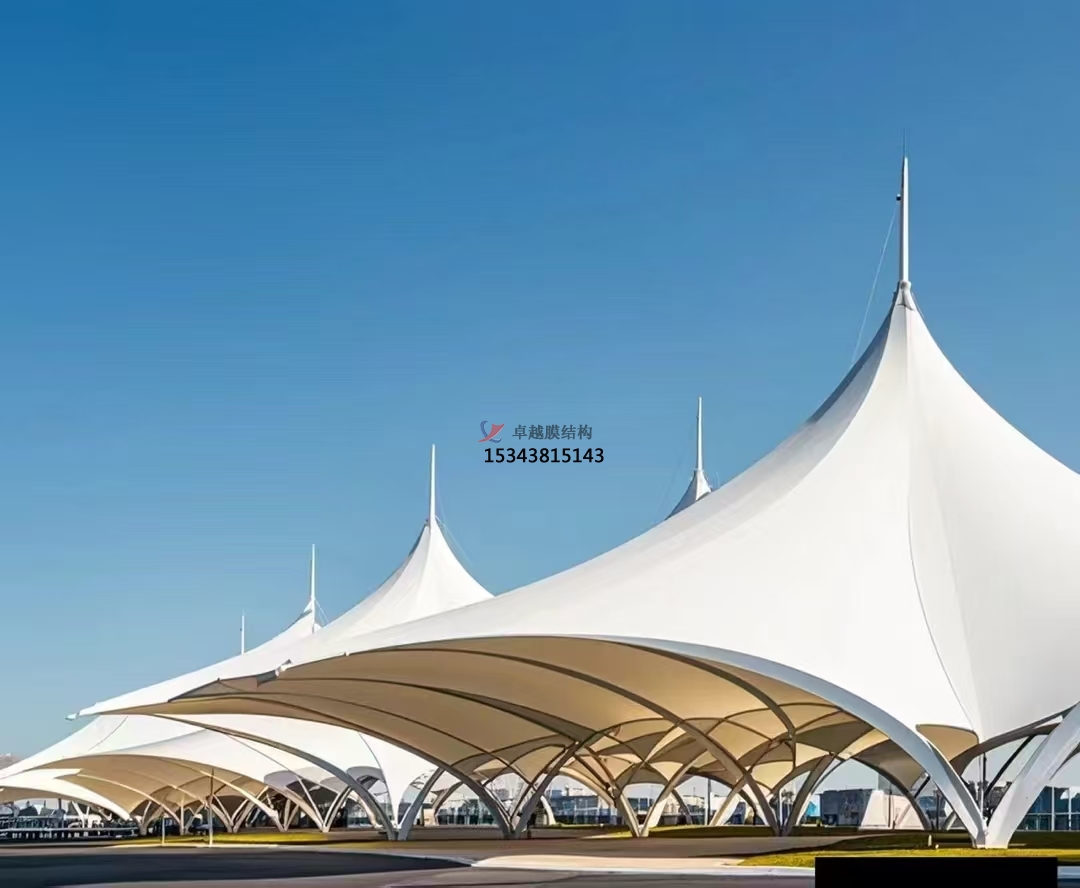 在各大交通樞紐,諸如機場、火車站的站前廣場,膜結(jié)構(gòu)雨棚的設(shè)計既便利了旅客出行,又以其醒目的形態(tài)有效引導(dǎo)了人流。以北京首都國際機場的T3航站樓為例,其前方的巨大膜結(jié)構(gòu)雨棚宛如一只振翅欲飛的鯤鵬,氣勢恢宏。它不僅滿足了實際使用需求,更成為機場一道別具一格的風(fēng)景線,給過往旅客留下了難以忘懷的印象。