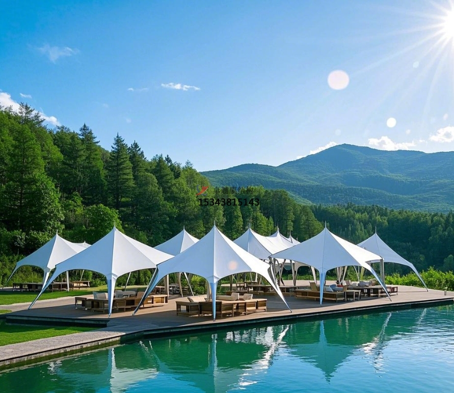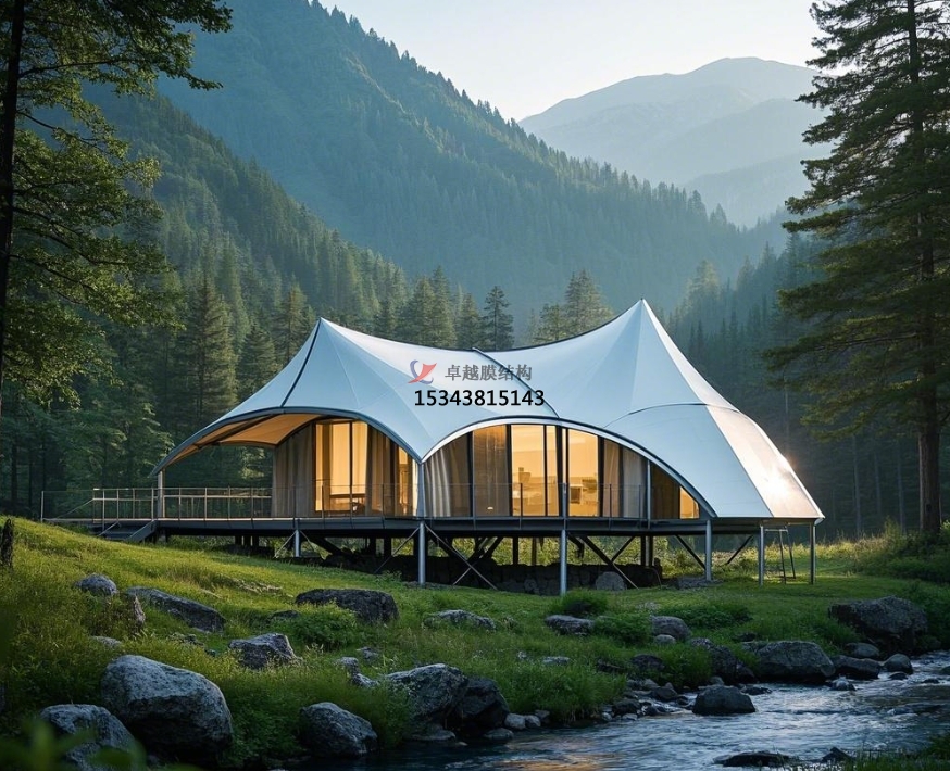 帳篷酒店膜結(jié)構(gòu)在各類旅游場景中廣泛應(yīng)用。在山地旅游景區(qū),膜結(jié)構(gòu)帳篷可依山勢(shì)而建,巧妙融入自然山林景觀,為游客提供親近山林、聆聽鳥鳴的住宿體驗(yàn);海濱度假勝地,帳篷酒店膜結(jié)構(gòu)憑借其輕盈造型與抗風(fēng)性能,矗立在沙灘旁,讓游客伴著海浪聲入眠;在草原旅游區(qū),大型膜結(jié)構(gòu)帳篷酒店可作為綜合性住宿場所,內(nèi)部設(shè)置多個(gè)房間與公共區(qū)域,既能滿足游客住宿需求,又能舉辦篝火晚會(huì)等特色活動(dòng),豐富游客的草原之旅。