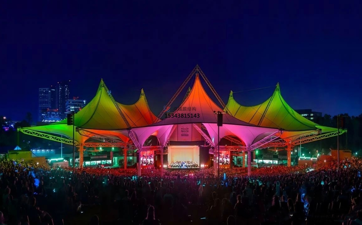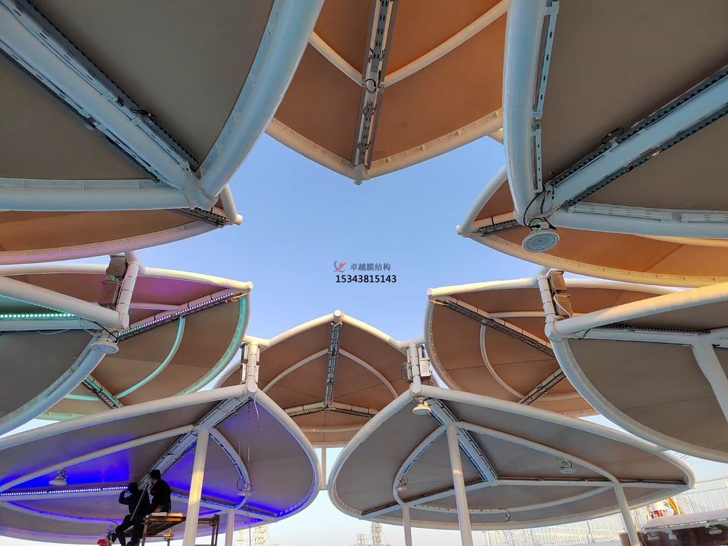 膜結(jié)構(gòu)景觀以其獨特的外觀和多樣化的功能而備受關(guān)注。膜結(jié)構(gòu)景觀不僅在建筑物上創(chuàng)造出令人印象深刻的視覺效果,同時還具有良好的抗風(fēng)、防水、強度高、耐候性好,防火阻燃、自潔性好,并且不受紫外光線的影響,使用壽命在20年以上。