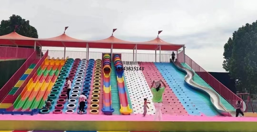 彩色膜結(jié)構(gòu)的設(shè)計靈活多變,可以根據(jù)具體需求定制成各種形狀和尺寸。它們不僅可以為游樂設(shè)備提供遮陽、避雨的功能,還可以創(chuàng)造出各種具有視覺沖擊力的藝術(shù)造型,提升整個游樂場的氛圍和吸引力。
