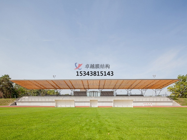 PTFE膜結(jié)構(gòu)看臺(tái)維護(hù)以定期檢查節(jié)點(diǎn)連接和膜面狀態(tài)為主,典型案例質(zhì)保期可達(dá)20年,長期使用成本低于傳統(tǒng)材料。憑借其綜合性能,已成為現(xiàn)代化體育場(chǎng)館建設(shè)的優(yōu)選方案,兼具功能性與設(shè)計(jì)創(chuàng)新性。PTFE膜結(jié)構(gòu)看臺(tái)應(yīng)用廣泛,由于其傳統(tǒng)建筑的曲線美,同時(shí)能擋雨、遮陽,為觀眾創(chuàng)造了舒適良好的觀賽環(huán)境,也可以打造出具有當(dāng)?shù)靥厣覍?shí)用的體育場(chǎng)館空間。