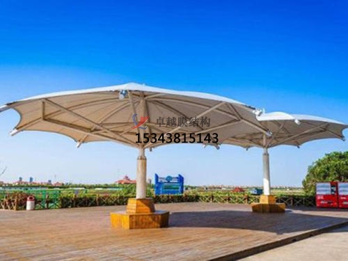 5、景觀膜結(jié)構(gòu)遮陽棚有哪些優(yōu)點?鋼景觀膜結(jié)構(gòu)遮陽棚特點主要有:1、造型新穎不刻板,2、施工快經(jīng)濟性高,3、自潔性佳免維護,4、自重輕跨度大,5、防火抗震能力強,6、適用范圍廣,7、使用壽命長。它不僅是功能性建筑,更是一個藝術(shù)建筑,越來越受到人們的親睞。