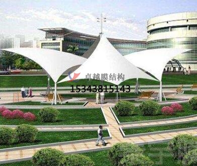 2. 藝術(shù)性:除了一般雨蓬不可比擬的實(shí)用、耐用、遮風(fēng)擋雨的功能外,張拉膜景觀雨蓬更是一座雕塑,一件藝術(shù)品,給人美的視覺享受。其柔美,其曲線,其剛?cè)岵?jì),其豐富造型,其潔白無瑕,讓人眼前一亮,回味悠長。
